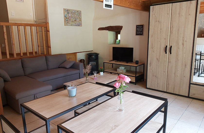 Onze kleine gîte (tot maximum 3 personen) hebben we ingericht tot een gezellige plek, en omdat we naturistisch willen verhuren, hebben we ook de tuin aangepakt zodat er geen inkijk is. Ook de bouw van het zwembad was grotendeels in functie van de verhuur van onze gîte. We wonen in een klein gehucht met 3 huizen (wij en nog 2 andere) waar we vooral genieten van de rust. Daarom hebben we ook beslist om enkel te verhuren adults only. De mensen die hier al op vakantie kwamen, vinden hier vooral rust en dat willen we ook graag zo houden. Om deze reden aanvaarden we ook geen huisdieren. Zelf hebben we een kleine hond, een cavalier king charles die rustig is wanneer hij geen andere honden ziet.